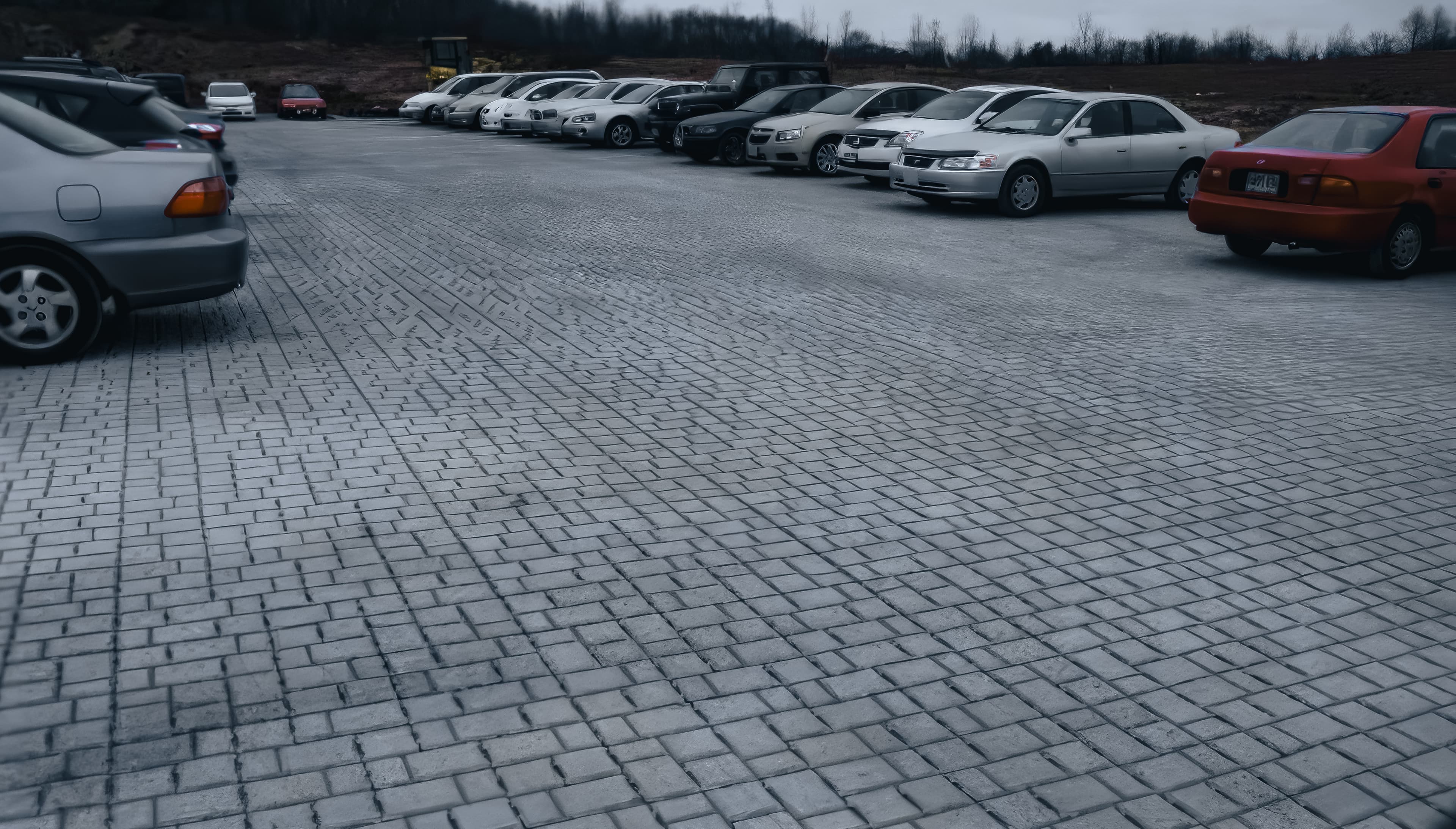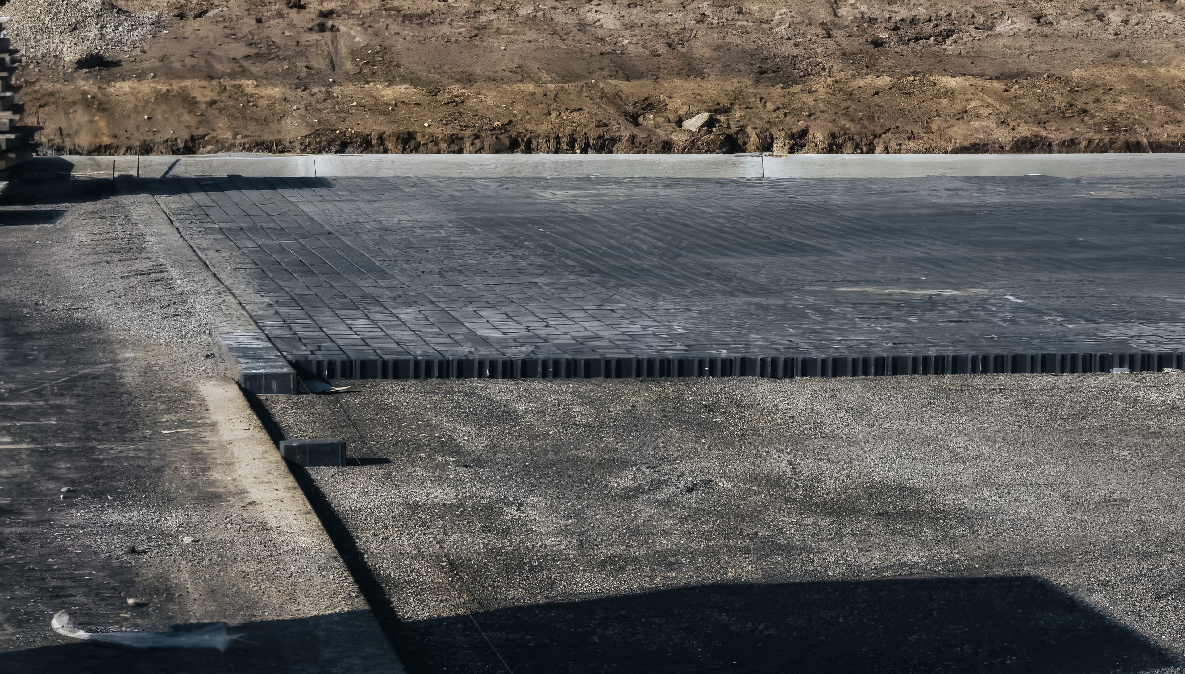 The project involved excavating the existing pavement system and installing subdrains. These subdrains were then encased in MIRAFI® 160N nonwoven geotextile. Following this, the sorptive tank system was implemented, along with the MIRAFI RS380i, a 0.75 in (19 mm) clear drainage layer, as well as the curb and bioswale system. The final step was the installation of permeable pavers.