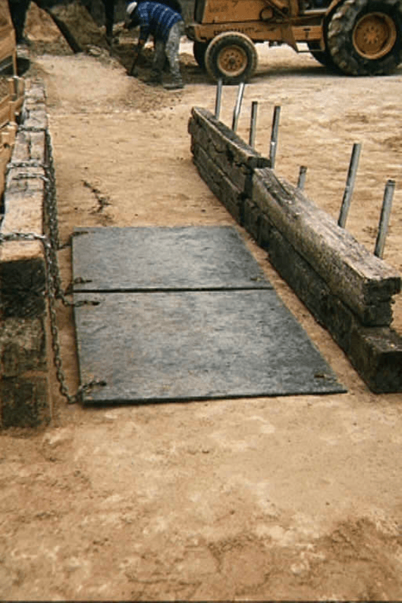5. Exhumation and tensile testing: The reinforcement is excavated for tensile strength testing.