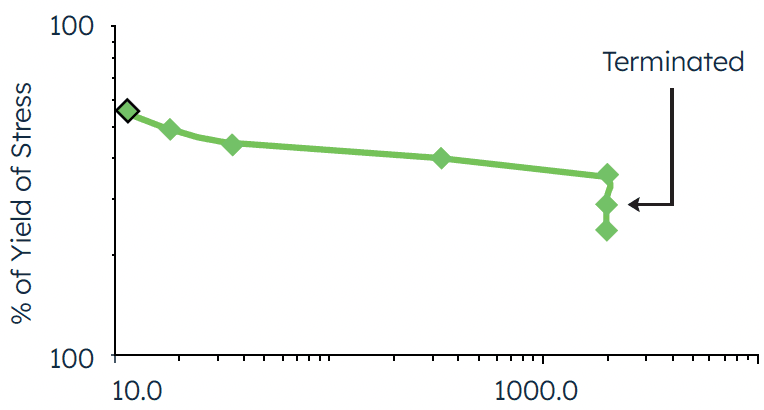 The data are reported in a plot of load vs. failure time. A NCTL test provides information on both the ductile and brittle failure mode of the material. It is the transition between these two failure mechanisms that indicates the SCR of the material².