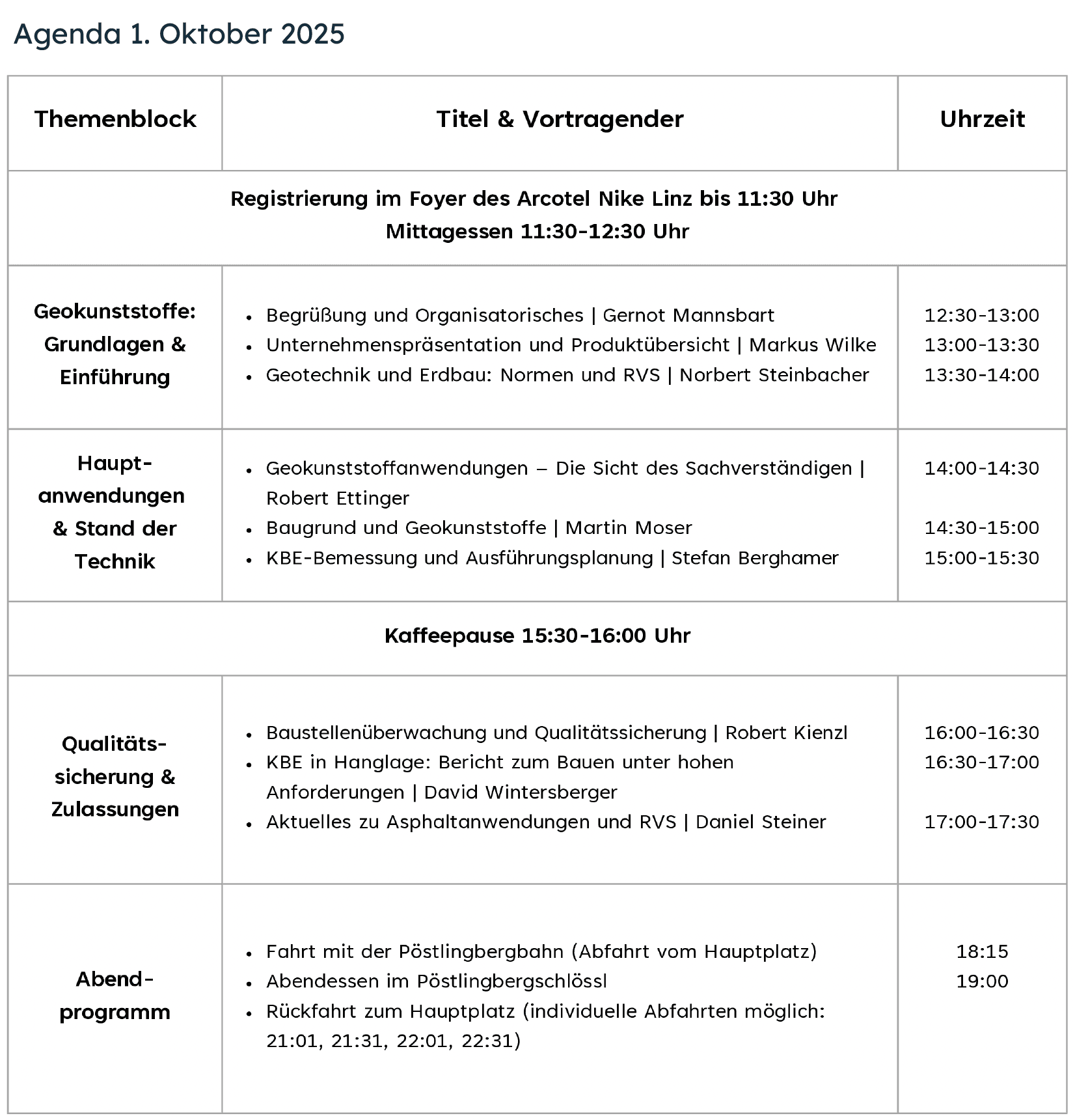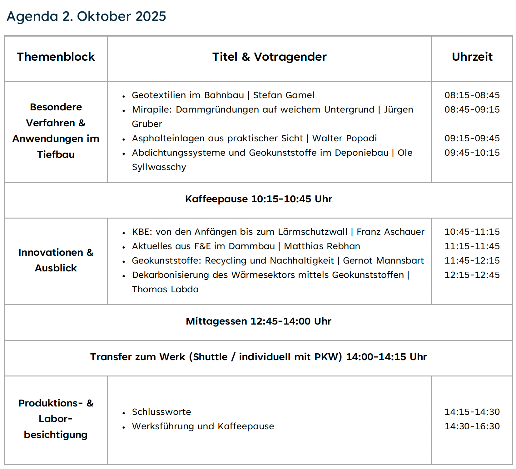 Neben den Vorträgen erwartet Sie ein Produktionsrundgang und ein abwechslungsreiches Abendprogramm. Hier finden Sie das detaillierte Programm. Änderungen sind vorbehalten.