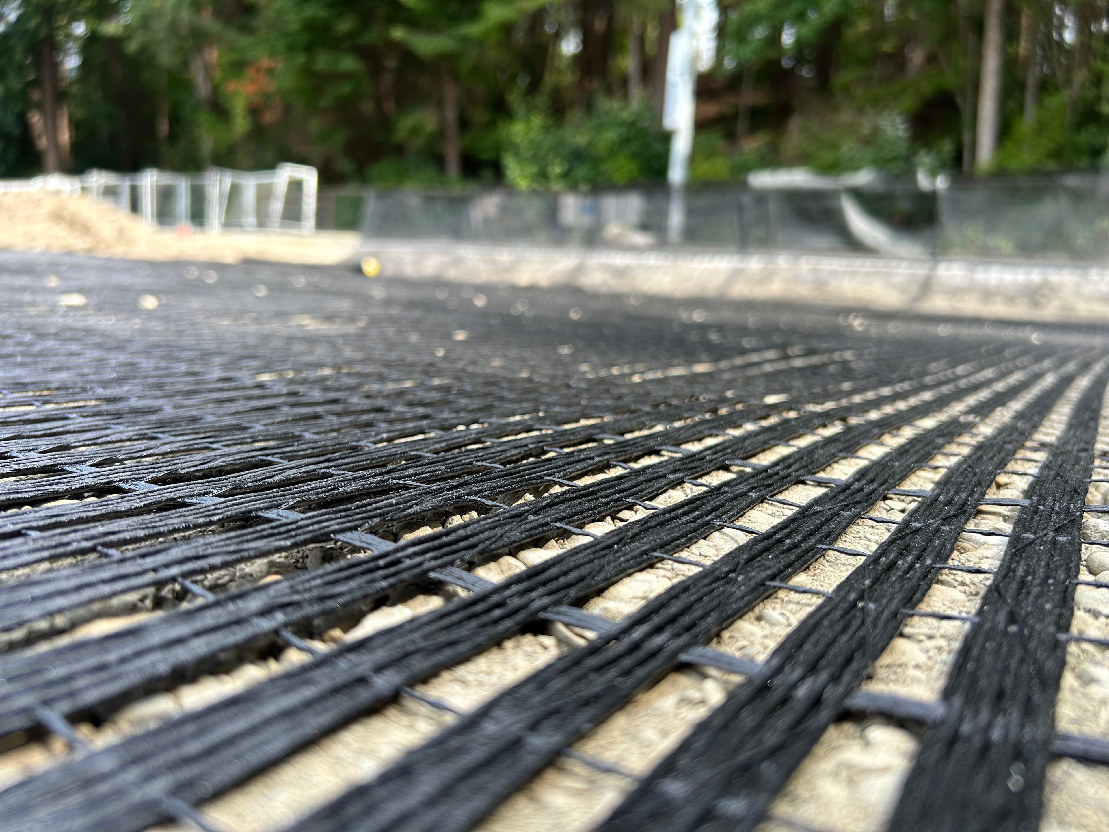 A notable design challenge involved securing sufficient anchorage if a void formed along the perimeter of the field. Typically, the geosynthetic would be extended past the edge of the hypothetical void; however, the construction limit was the edge of the field. Binnie & Associates, the design engineers, resolved this by anchoring the MIRAGRID 24XT to the existing concrete curb surrounding the field.