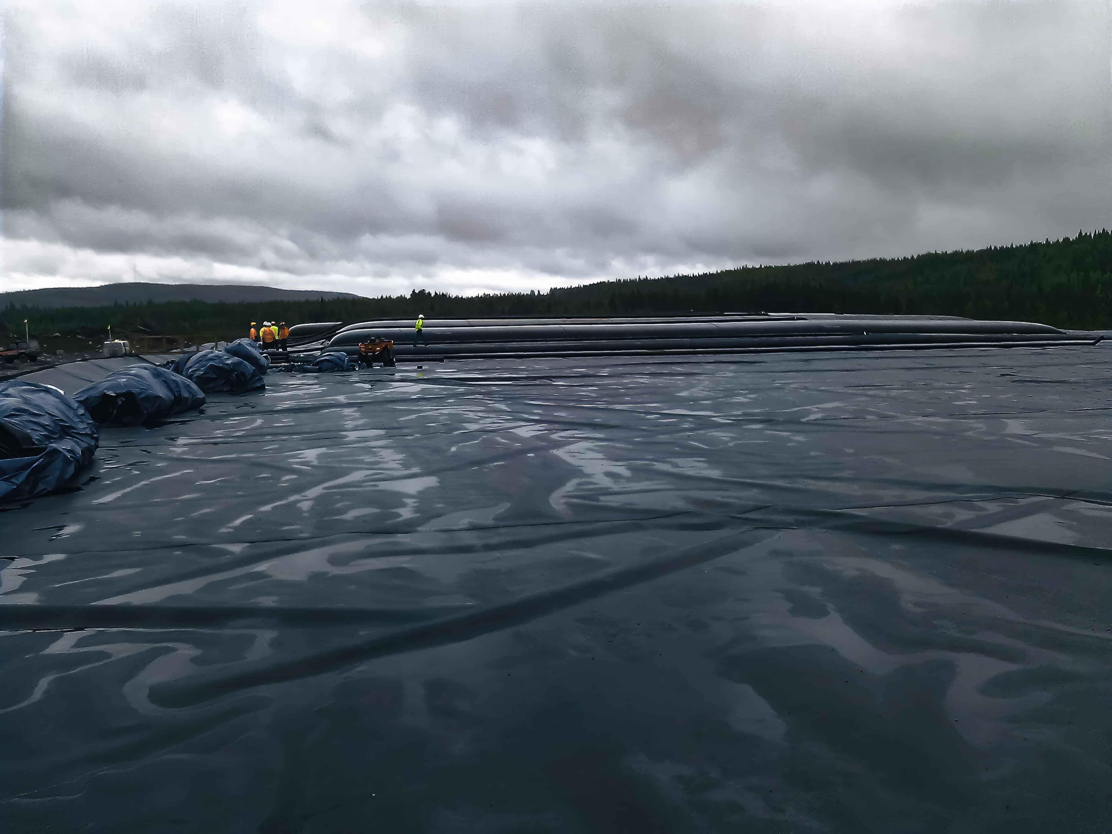 To address the water contamination issues, a comprehensive solution was implemented in 2013. The solution involved the use of 13.7 m (45 ft) wide and 50.7 m (166 ft) long GEOTUBE® containers installed on a 1.5 mm (60 mil) smooth GSE® HDgeomembrane to capture heavy metals from the contaminated water. The project benefited from the collaboration of various experts, including site management, a dedicated team of Solmax dewatering professionals, specialized engineering partners and a contractor with expertise in using Watermaster environmental dredges in conjunction with GEOTUBE technology.