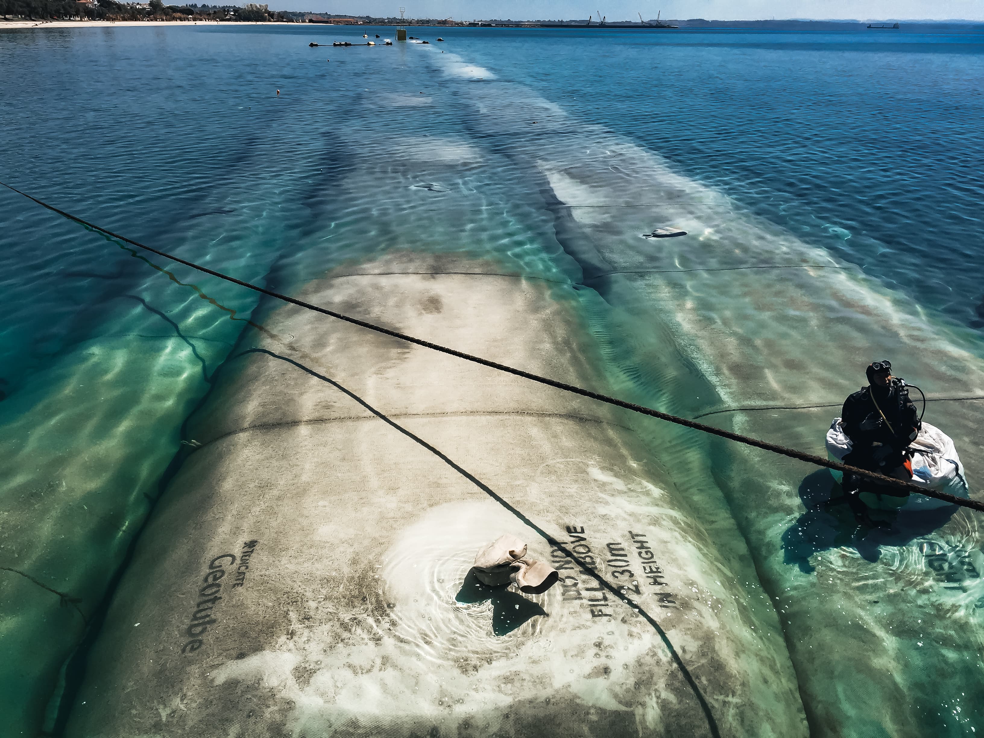 The primary challenge was the collaboration between Aktor and a Thessaloniki-based diving company to install the scour aprons and GEOTUBE systems, all against the backdrop of an impending hotel grand opening during Easter. Standard rubble mount submerged breakwaters would not be suitable due to sharp edged rocks, making the area unsafe for bathers. A soft textile GEOTUBE structure would be more friendly for the beach users.