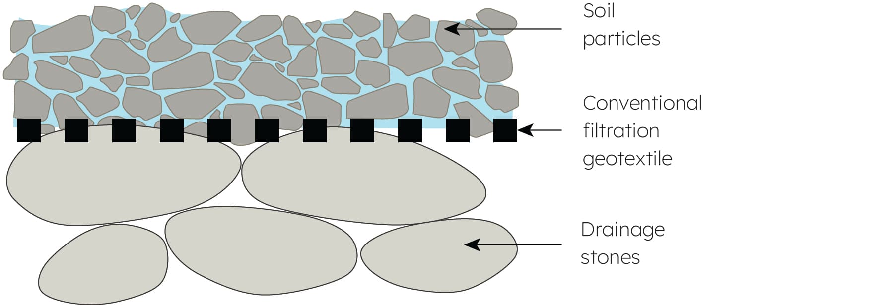 Most roads are constructed over unsaturated soil, making subgrade moisture regulation a critical design factor. Unfortunately, conventional geotextile solutions, whether woven or nonwoven, are often non-absorbent. They act as capillary barriers, preventing vertical moisture migration. This unintended effect causes moisture to accumulate above the geotextile, eventually saturating the subgrade and reducing its shear strength and load-bearing capacity.