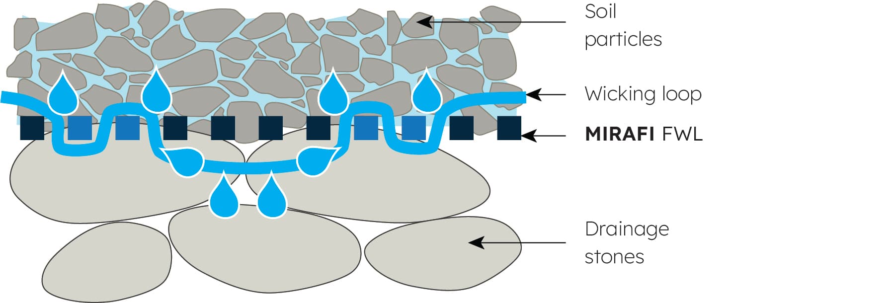High specific surface area: The internal structure of wicking yarns creates higher matrix suction than the surrounding soil, pulling water into the geotextile system (see Figure 3 and 4).