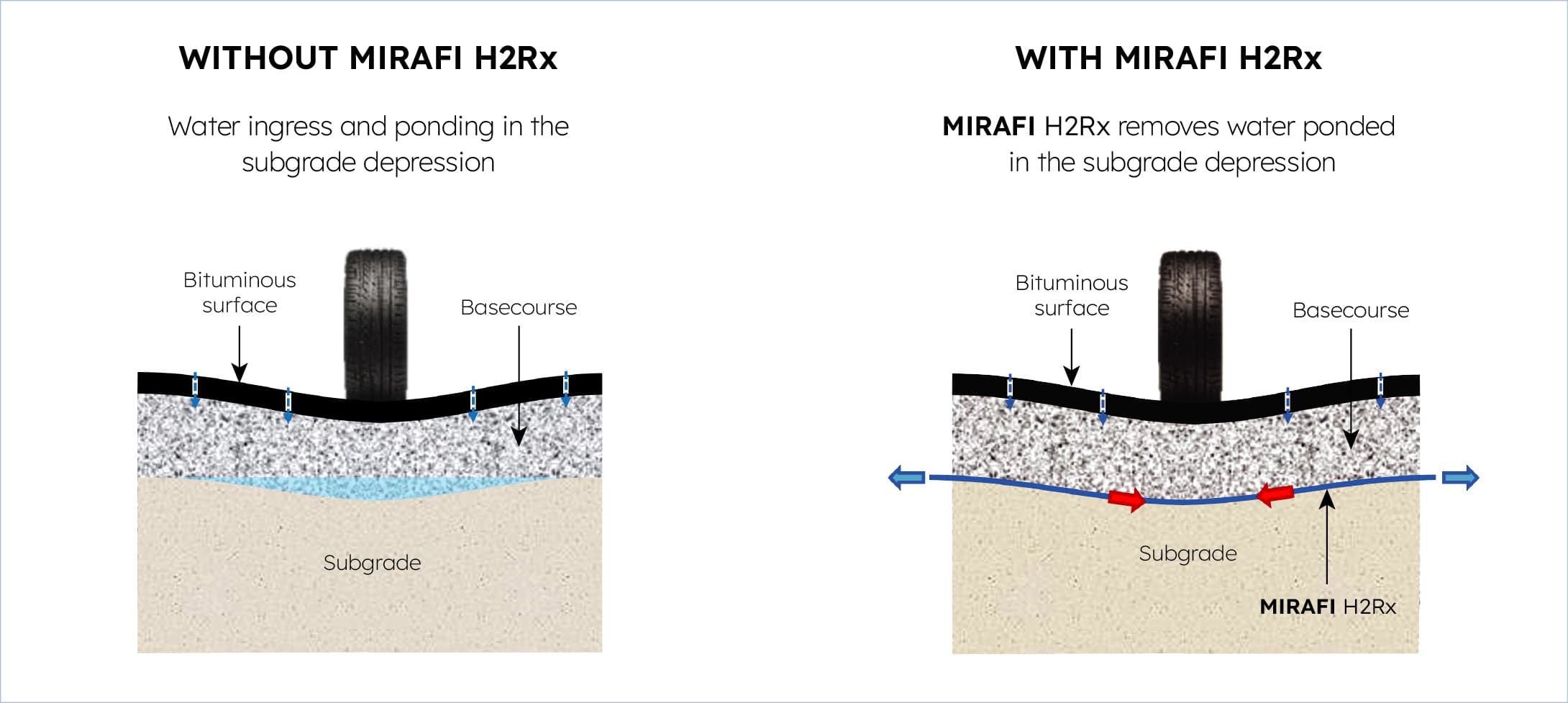 This geotextile solution for water-damaged roads dramatically reduces moisture buildup, helping preserve subgrade integrity and pavement performance.