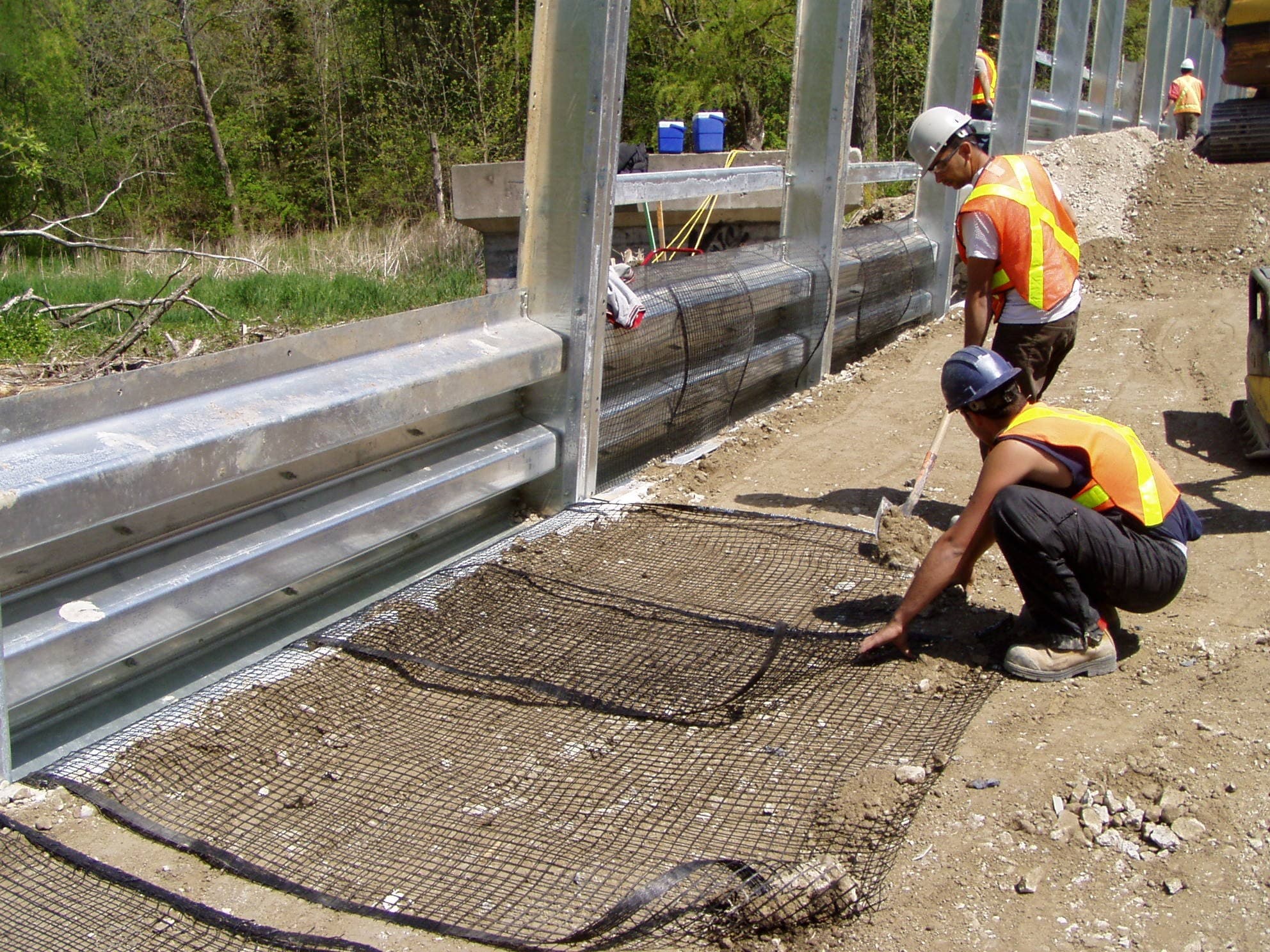 MIRAGRID XT Geogrids were selected for their high tensile strength and durability, making them ideal for railway applications. Specifically, MIRAGRID 3XT was used, providing a Long-Term Design Strength (LTDS) of 28 kN/m (1920 lb/ft), which met the stringent demands of the rail embankment project. The geogrids were oriented perpendicular to the wall face, ensuring optimal load distribution and reinforcement.