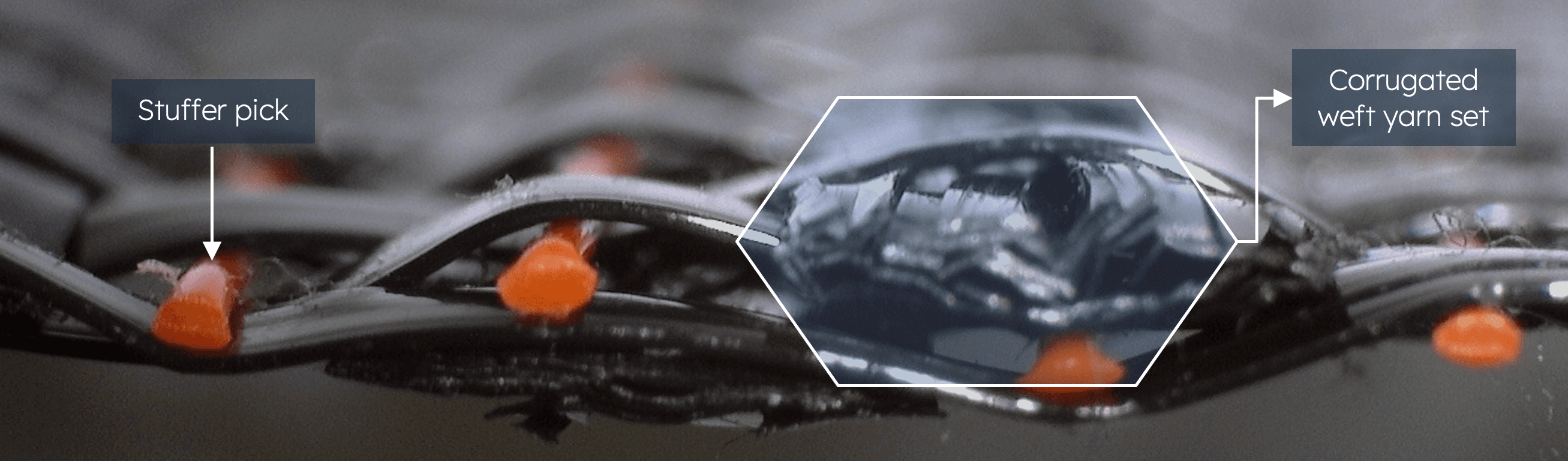 Figure 4: MIRAFI RS580i cross-sectional image illustrating stuffer pick and weft yarn set